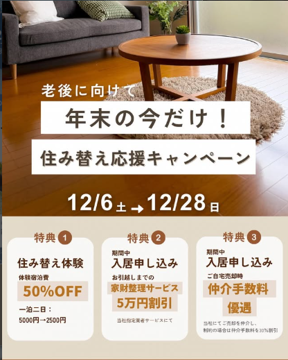 年内入居お申込みの方に特典!住み替え応援キャンぺーン開催中