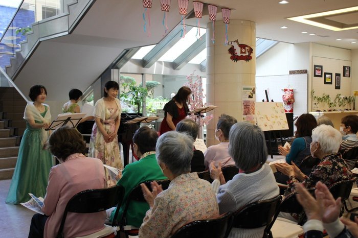 自画自賛の前置きはさておき、館内お花見もレストランお手製の花見弁当から始まり、満腹になったあと女性カルテットグループ「待音亭」さんの素晴らしい春を感じさせる公演会を聞き入り、そして最後は一本桜を観ながら「お抹茶&お団子セット」を満喫。